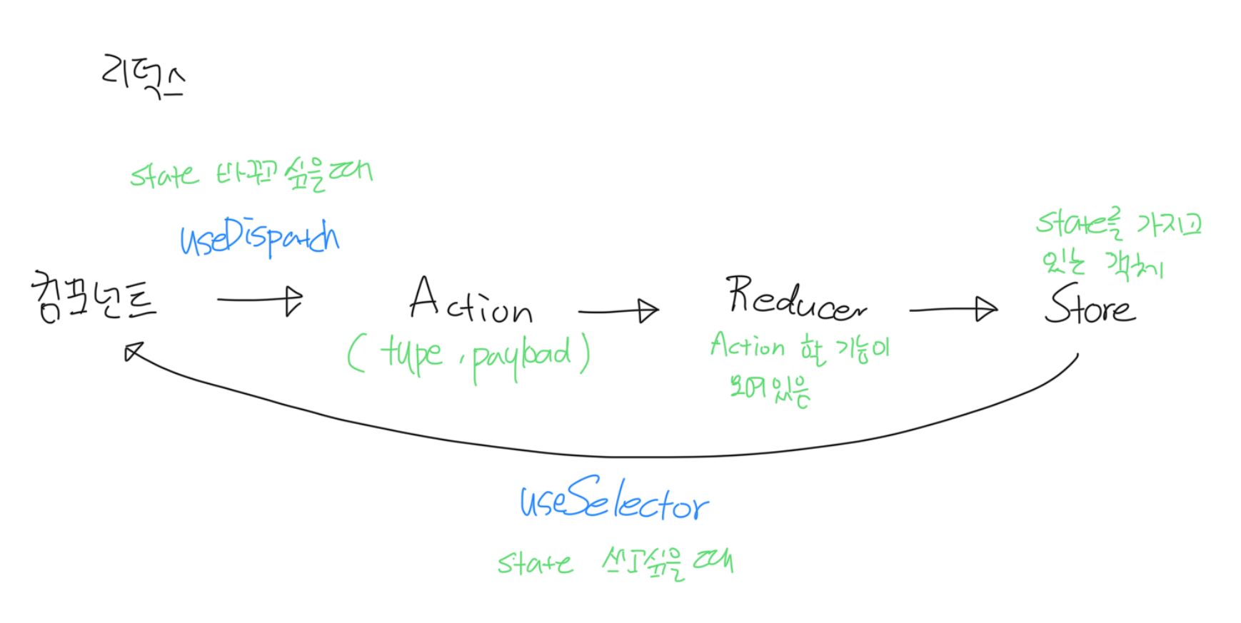 Action은 type과 payload로 이루어진 객체로 type은 액션의 이름, payload는 매개변수라고 생각하면 된다.